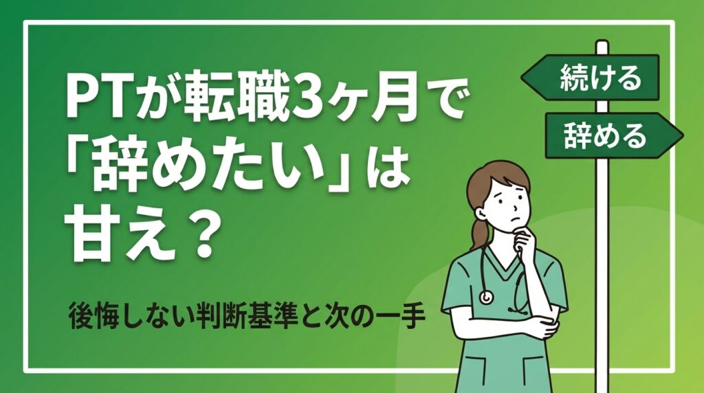 PTが転職3ヶ月で「辞めたい」は甘え?後悔しない判断基準と次の一手