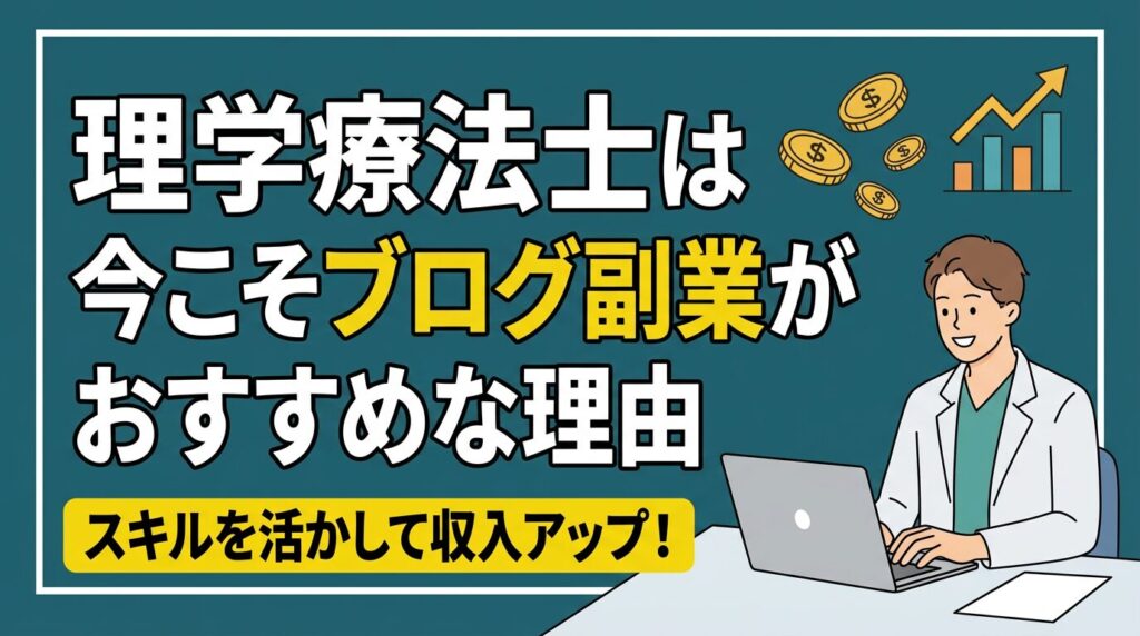 「理学療法士の給料だけでは将来が不安…」「副業を始めたいけど、今さらブログなんてオワコンでしょ?」 実は、その認識は大きなチャンスを逃しているかもしれません。 多くの理学療法士の方を見てきましたが、PTには頭の回転が速い人が非常に多い印象です...