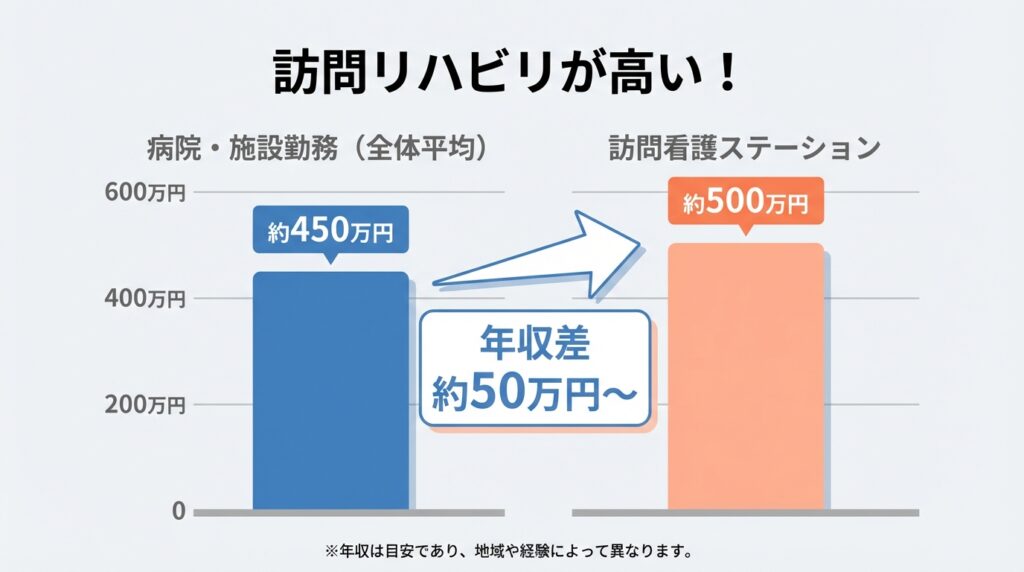 | 訪問リハビリ 従事者平均 | 約460万円 | 約490〜550万円 (高水準を維持) |