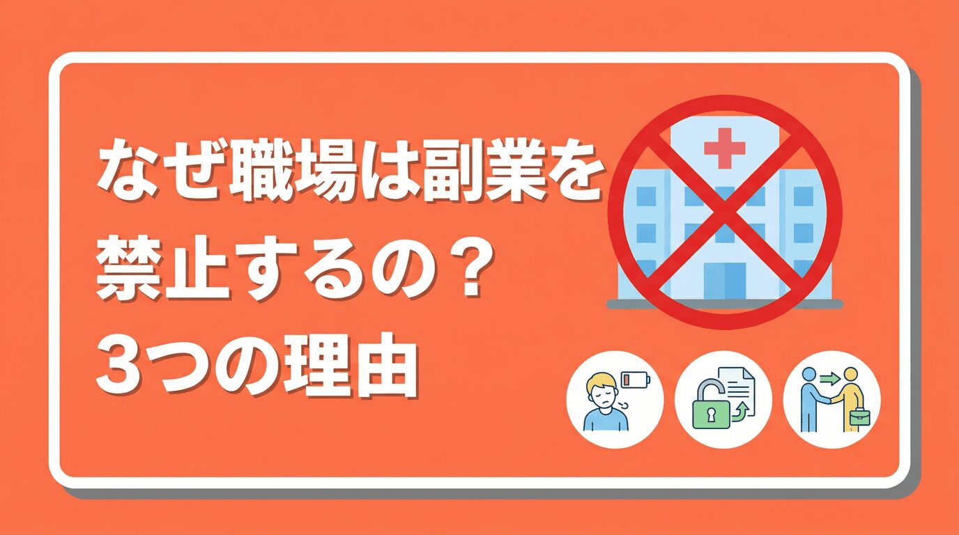 患者さんの安全に直結する仕事だからこそ、職場は「本業に集中してほしい」という理由で副業を禁止していることが多いんです。