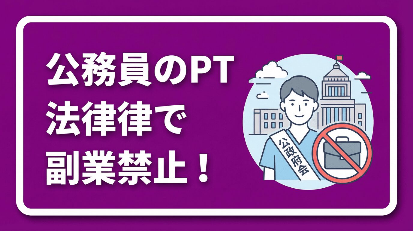 公務員の理学療法士は、就業規則じゃなくて法律で副業が禁止されているんです。これは民間とは全然違うので要注意ですよ!