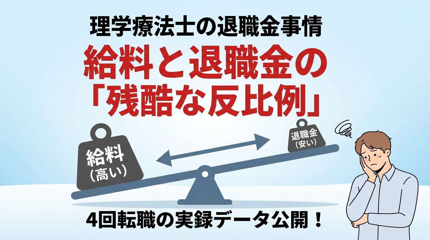 私の実体験をもとに、多くのPTが陥りがちな「給料と退職金の残酷な反比例」について詳しく解説します。