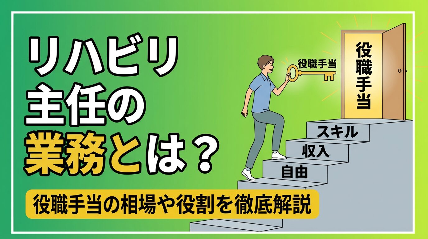 この記事では、リハビリ主任の具体的な業務内容から、誰もがぶつかる「板挟みの壁」の乗り越え方、そして気になる「主任手当・年収」のリアルまでを分かりやすく解説します。